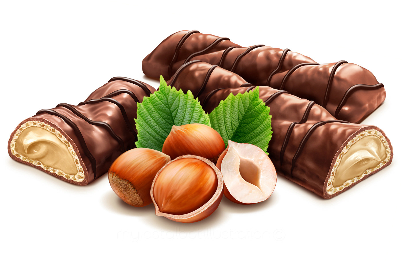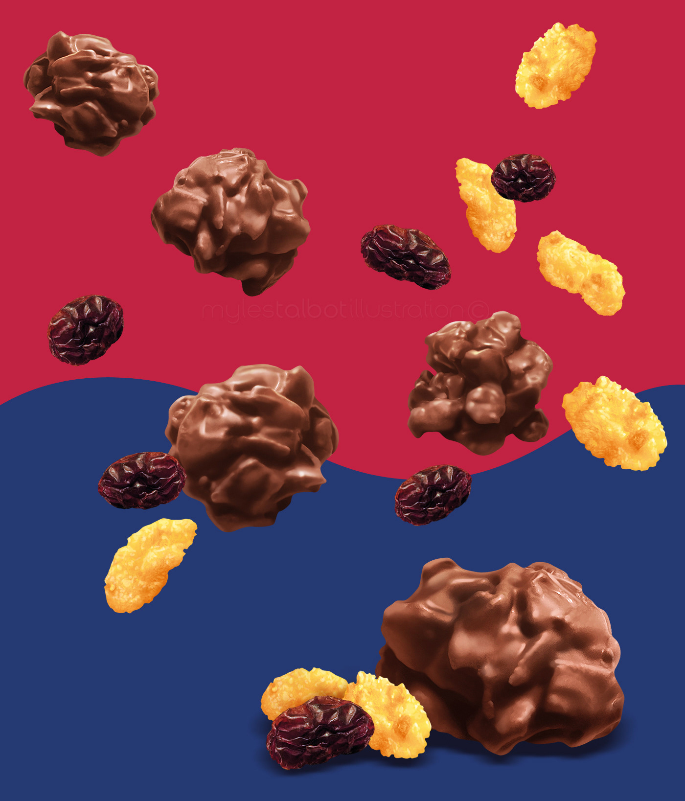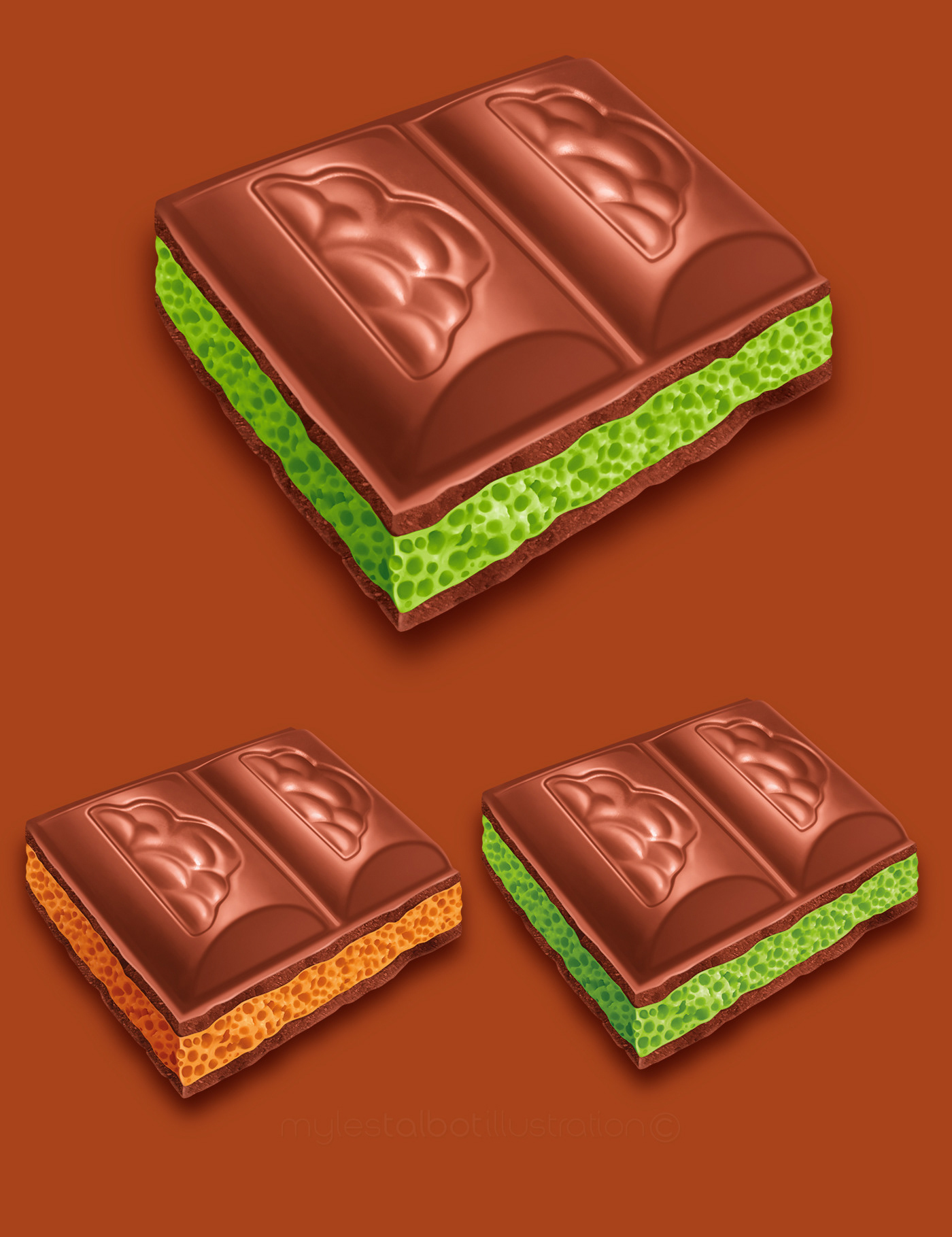 A selection of chocolates illustrated for the ALDI Dairyfine and Moser Roth brands. Created using our own studio photography, illustration and re-touching.