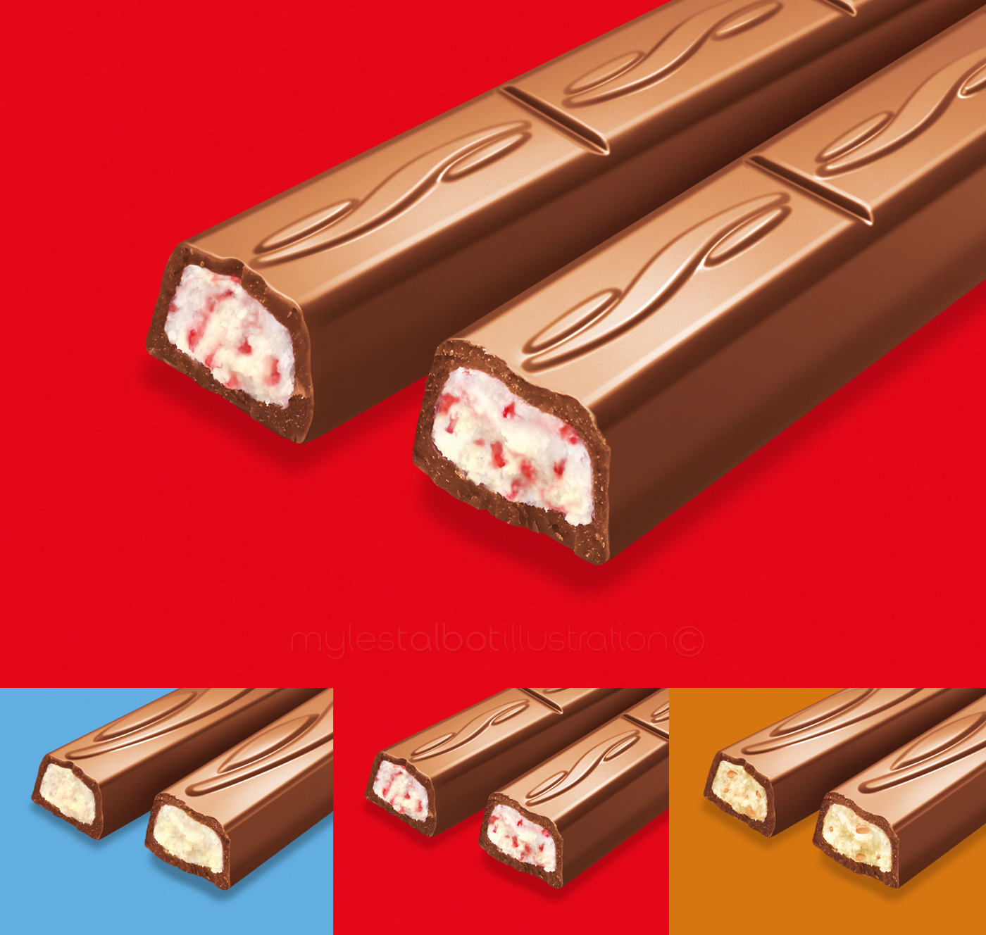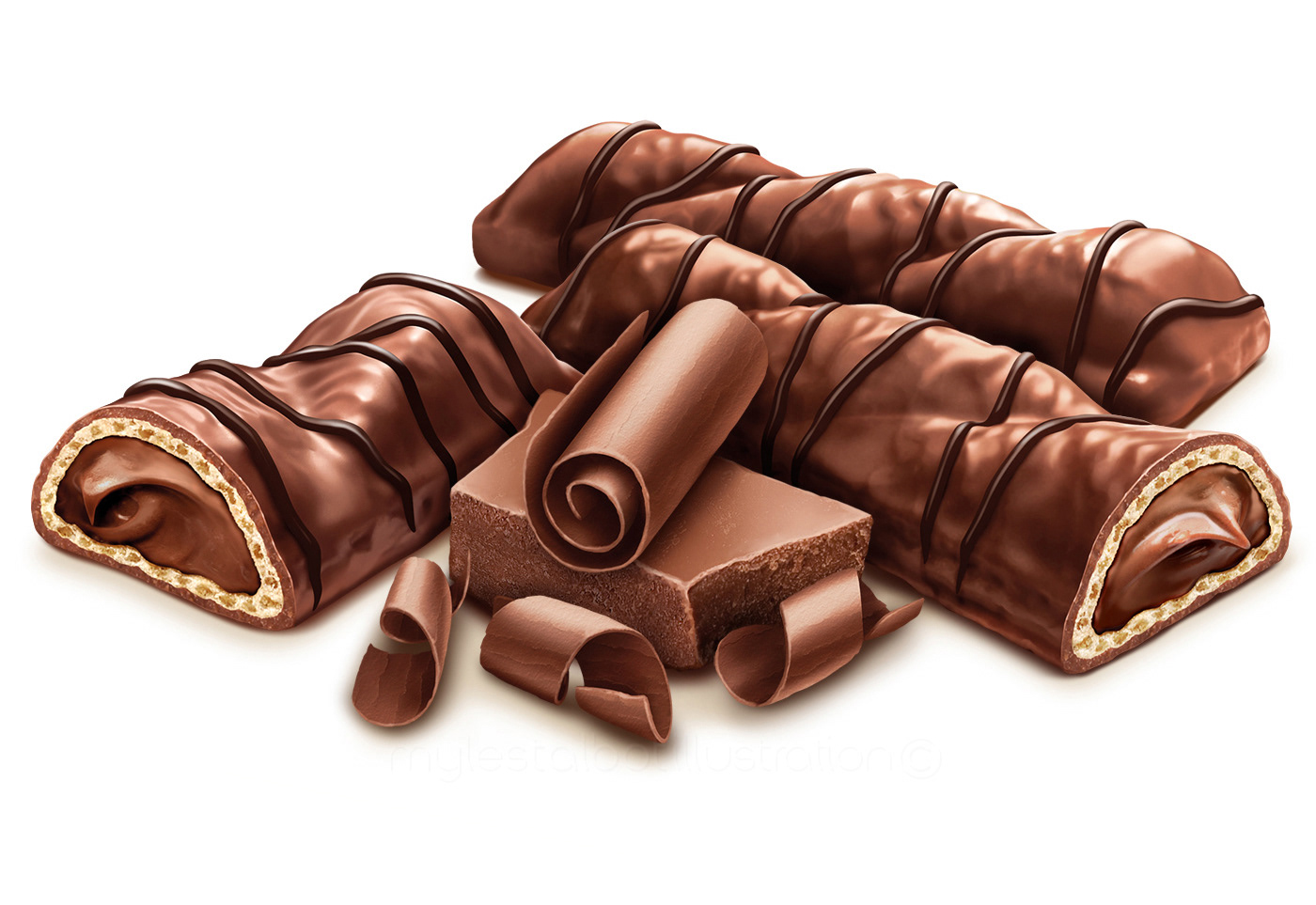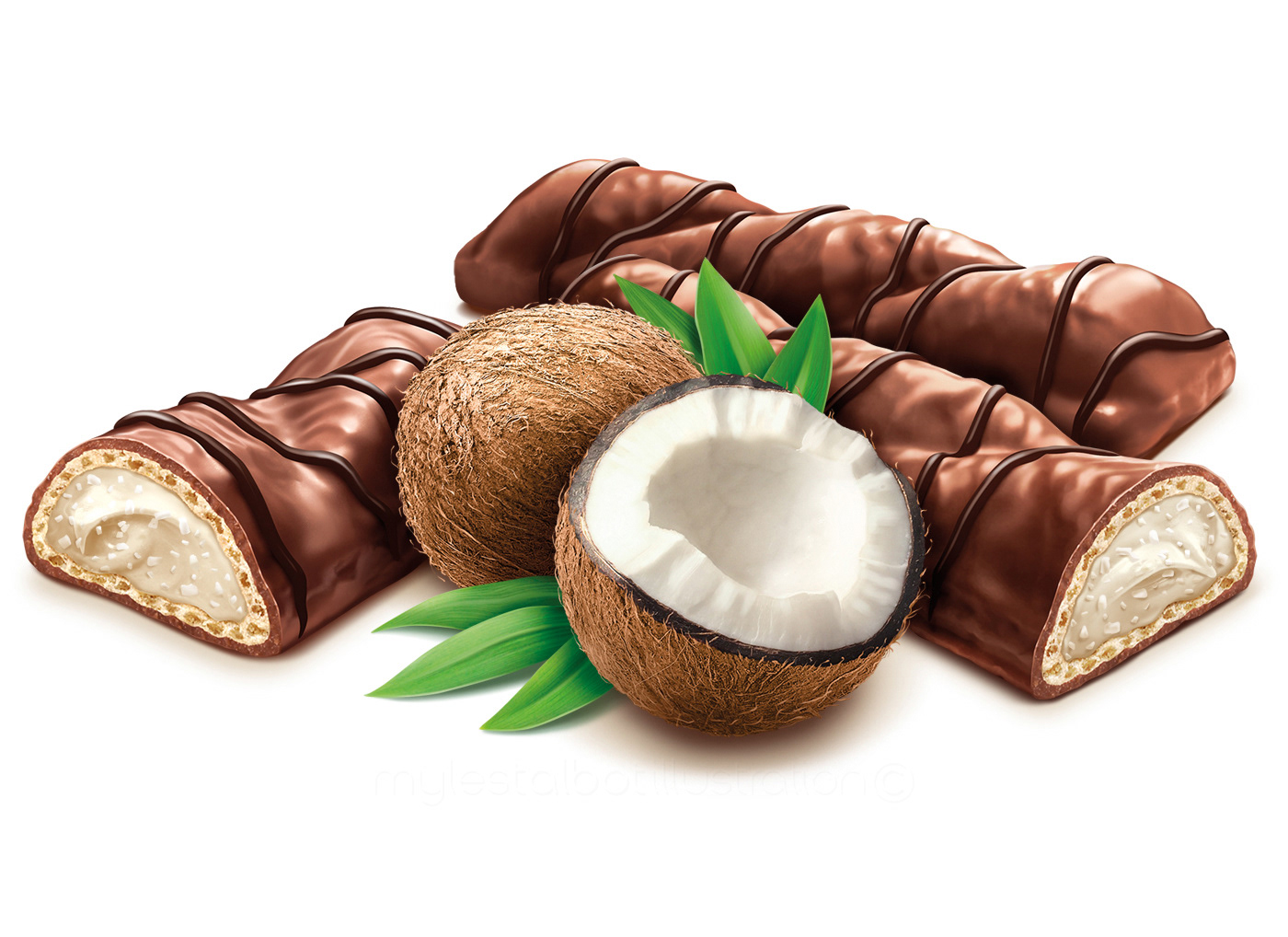 A selection of chocolates illustrated for the ALDI Dairyfine and Moser Roth brands. Created using our own studio photography, illustration and re-touching.